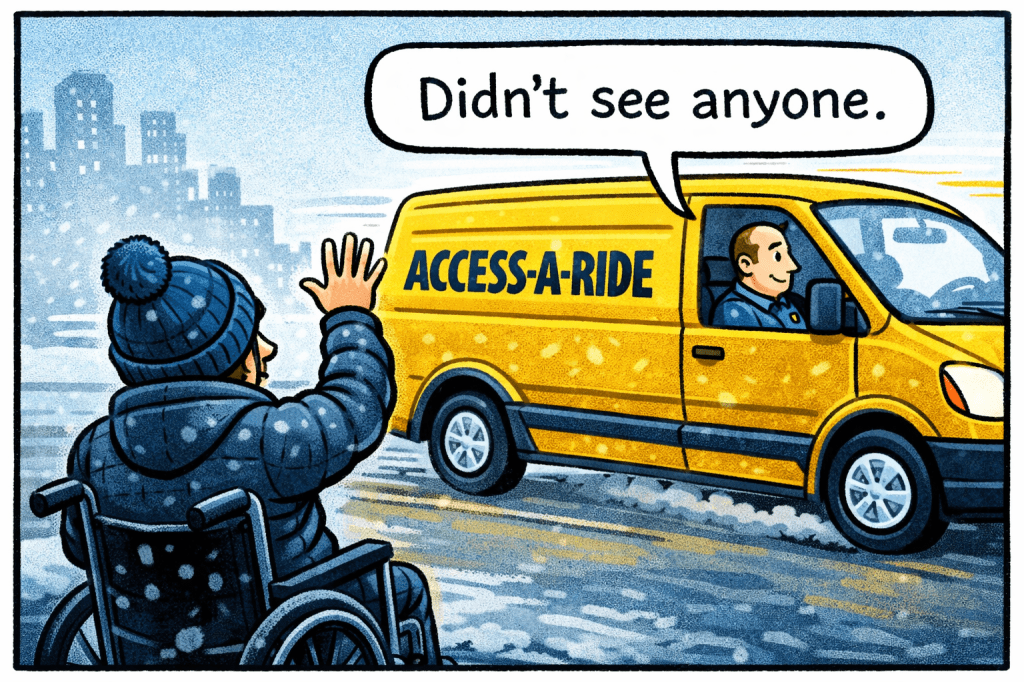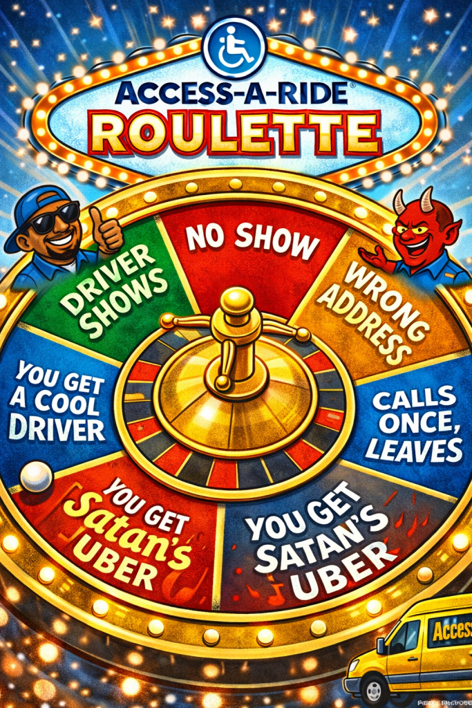 As any seasoned Access A Ride user knows, you need to be outside early. Not āon timeā earlyā¦.like, ādid the sun even rise yet?ā early. If youāre not out there, visible and glowing like a neon sign, youāre marked as a no show. Thatās right, even if the driver pulls up like a getaway car and takes off before you can wave.