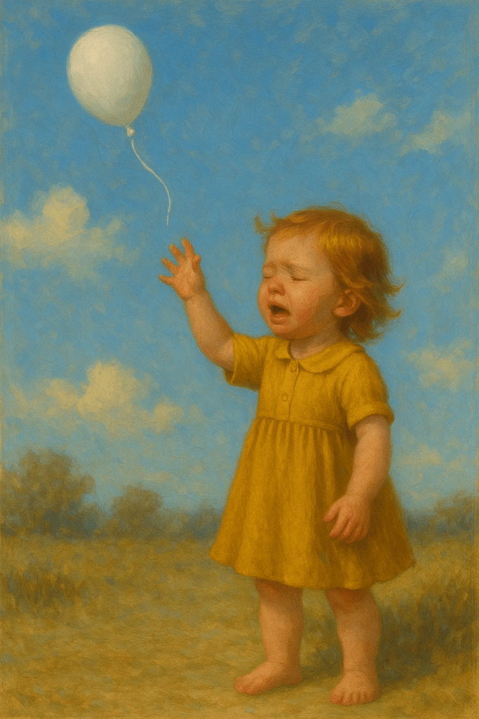 The baby cried. I don’t know if it was her balloon or just the idea of something pure drifting off forever. But we comforted her and went to get another one. Because that’s what you do when something good escapes your hands—you try to bring back a version of it.