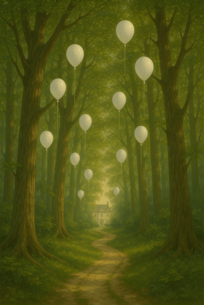 I was walking through a quiet neighborhood. Fall had clearly checked in: the trees were bare, the air felt crisp, and I was with my best friend’s parents and a small child—maybe two or three years old. We found two balloons along the way. Simple white ones. Joyful, floating, light. The kind that make toddlers smile and grown-ups nostalgic.