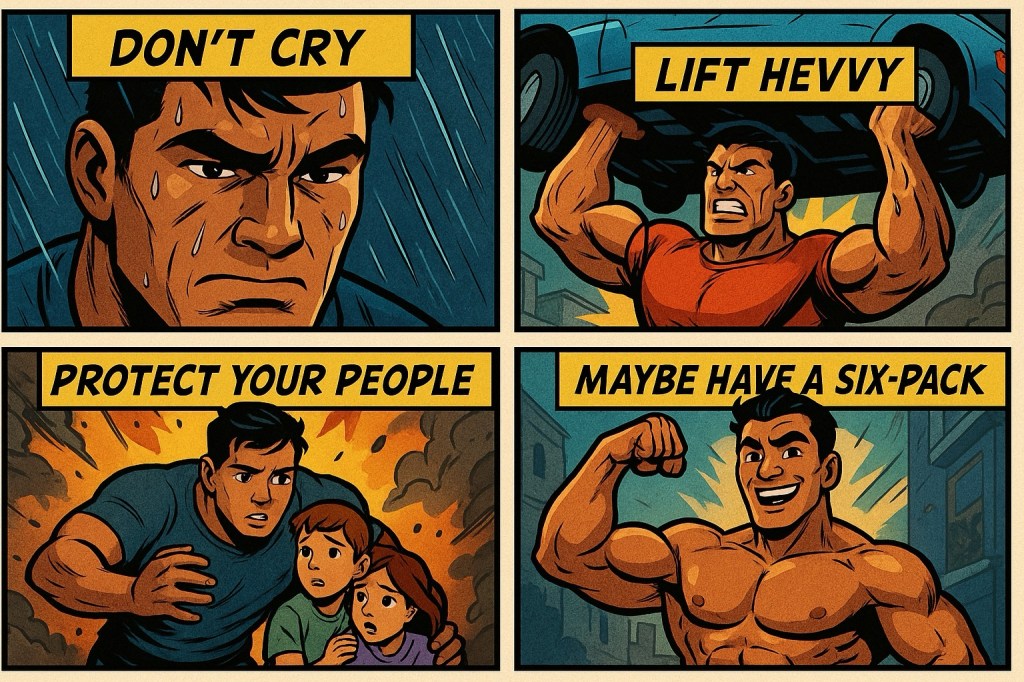 “Don’t cry. Lift heavy. Protect your people. And hey, maybe throw in a six-pack while you’re at it.”